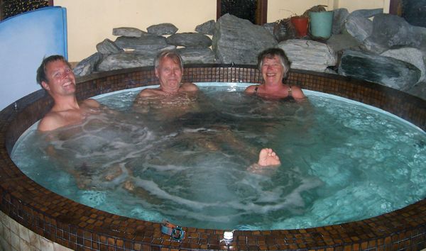 After visiting all that ice, we enjoy a hot tub soak at Hokitika.