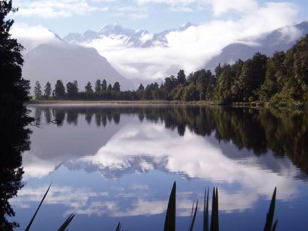 Back at lower altitudes, Mt Cook seen twice from the shores of Matheson Lake.