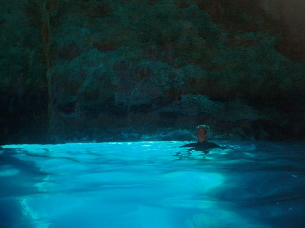 Barb pops up inside Mariners' Cave. The blue glow is light leaking in from the entrance, not a nuclear reactor.