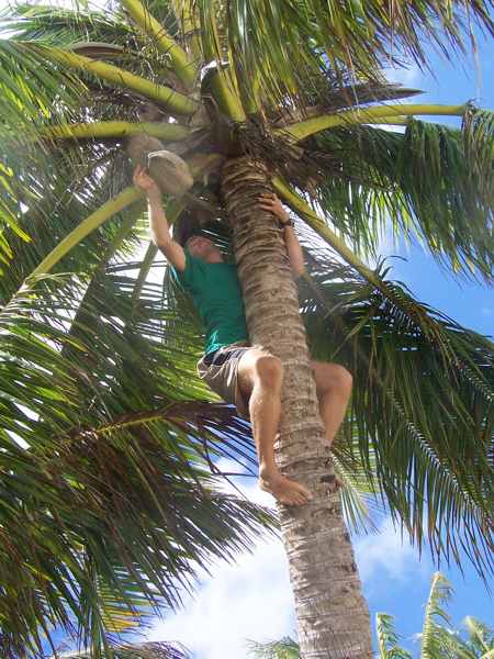 During my trip home to Victoria to be with my father for his surgery, I began to get a case of shingles, which I think of as chicken pox for grown-ups. The symptoms didn't show up clearly until I was well away from any medical facilities, stuck on an ill-equipped and overloaded Kiribati passenger ship. Although unhappy about my ailment, I was impressed with my ability to self-diagnose: our Merck Medical Manual supported my hypothesis and the nurse from the cruise ship which came in a couple of days later confirmed it. There is no physician on Tabuaeran, nor do they have much medicine so I was very lucky the cruise ship was in that week, allowing me to get some medication from them to prevent permanent nerve damage. I have never experienced such an awful headache: I could barely move for fear of jarring my brain around. I now have extra sympathy for migraine sufferers. It didn't help that I misread the medical manual and thought it said I couldn't take codeine. In fact, it said other drugs might not be strong enough. Bjarne re-read it and then quickly got me out some of the stronger stuff: it was either out of sympathy or self-defense, as he was being kept awake by my moaning. I was out of commission for a few days, in which I hung around Freya, took drugs, slept a lot, and generally tried to take care of myself. Perhaps it's my cold climate conditioning, but I find that even in the tropics a hot drink can be comforting, most of the time: I was just about to take a soothing sip of herbal tea when I suddenly became quite disgusted - a boiled cockroach was floating in my cup! Life in the tropics provides mixed blessings.