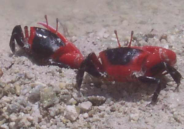 It was great to be cycling again. We could cover more distance but still not go so fast that we missed the scenery. We could also stop whenever we saw anything that caught our interest, such as a great view of the lagoon, little crabs with bright red shells (alive), or interesting shore birds that usually stayed still only when the camera was put away. It was, however, a hot day and we covered a good distance; given the condition of the roads and how long it had been since we'd cycled regularly, I thought it was good that the bicycles had large padded seats. We appreciated the use of the NCL bikes, which were in much better shape than most of the bicycles on the island. When I borrowed a bike from Bruno, I ended up walking it most of the way when the hub at the rear became disconnected from the wheel so the chain wouldn't turn the wheel. Another bike lost a pedal, leaving Bjarne to cycle one legged. Bicycles and spare parts were not easy to come by here.