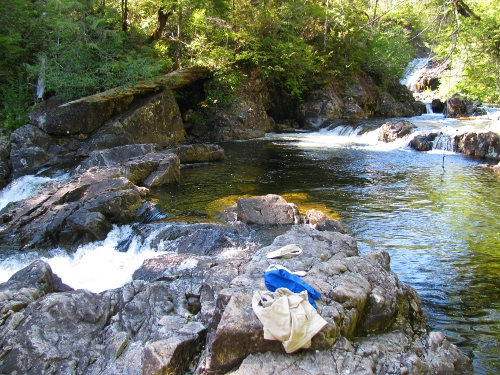 After frolicking long enough to get clean we dried out on the sun-heated boulders. Eventually we had to leave for reasons of hunger and a rising tide that was threatening to cover our gear.