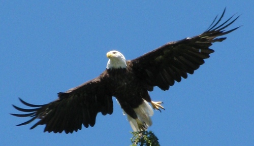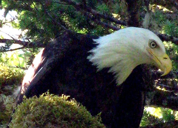 enjoyed a pretty good view of an eagle on shore eating a fish.