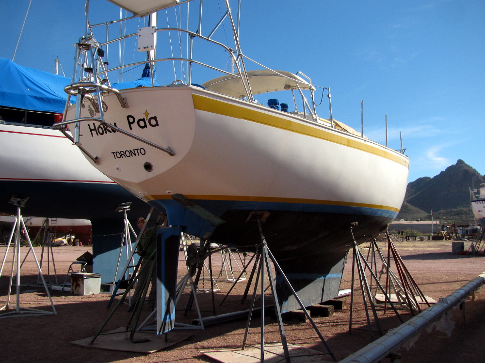 One might think after spending so much time last year with focused work on the boat there would be little left to do. Not so, athough we did accomplish quite a lot in that time. One big task - inspecting the keel bolts is described here. Another huge accomplishment was getting a replacement mast. Gosh, that only took one sentence to say but it took months to clarify our needs, source out the mast, arrange transportation, figure out how to cross two borders, sort through Mexican bureaucracy with little Spanish ability, and make sure the driver on the last stretch could find the boatyard. It was a happy day when this 51 foot aluminum stick arrived as the sole cargo in a 53 foot tractor trailer. However, it was also a day close to our departure so the refitting and hoisting had to wait. As to all the other things that needed doing on that Friday we returned (some of which we hadn't yet become aware of) well, that seems to be the way boats work. |