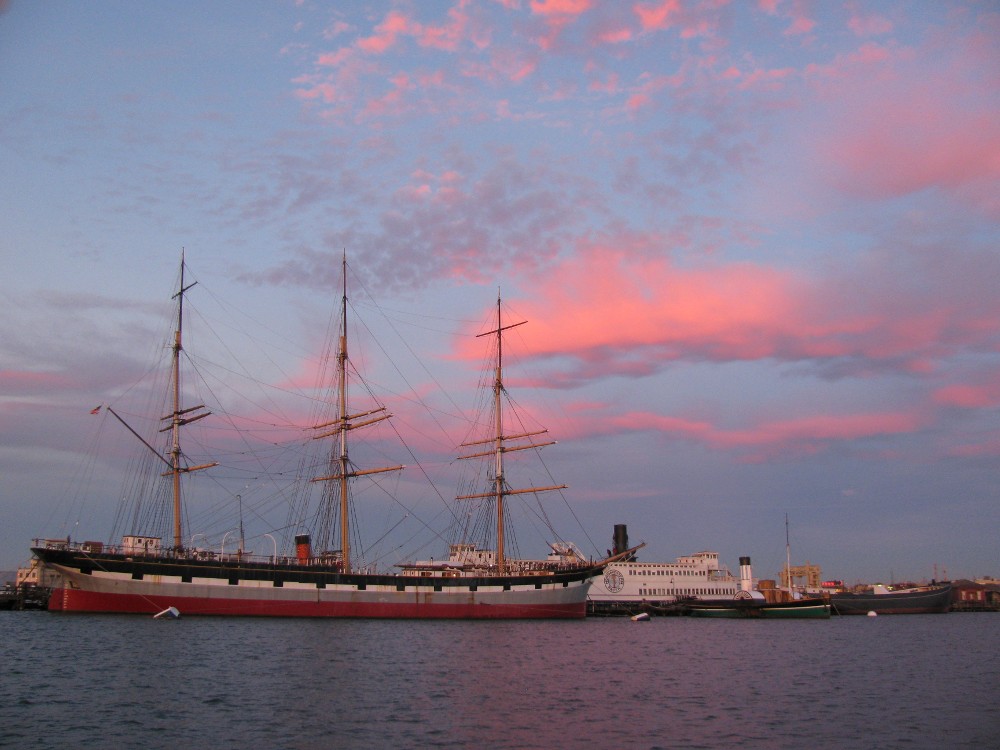 The view to the east in Aquatic Marine Park, home to several historical vessels. Square-rigger Balclutha had groups of kids moving through every couple of days for some on-board training. The sounds of 'heave-ho!' and 'aye aye sir' were frequently heard.