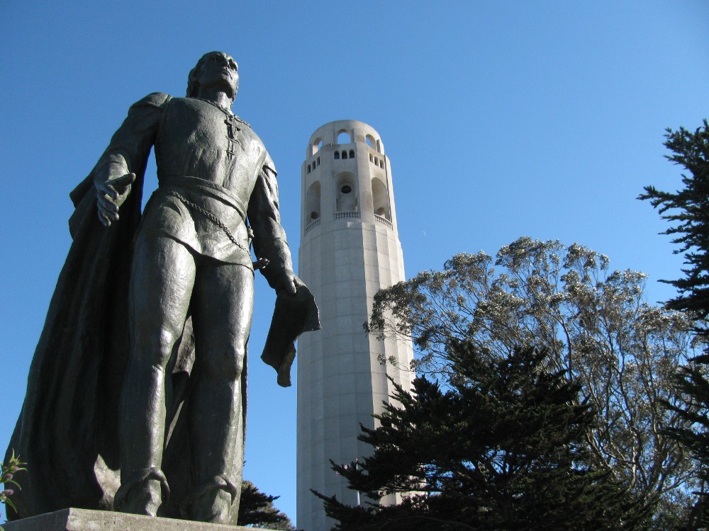 Up a steep hill is perched the Coit tower - a New Deal work project and now a historical art structure.