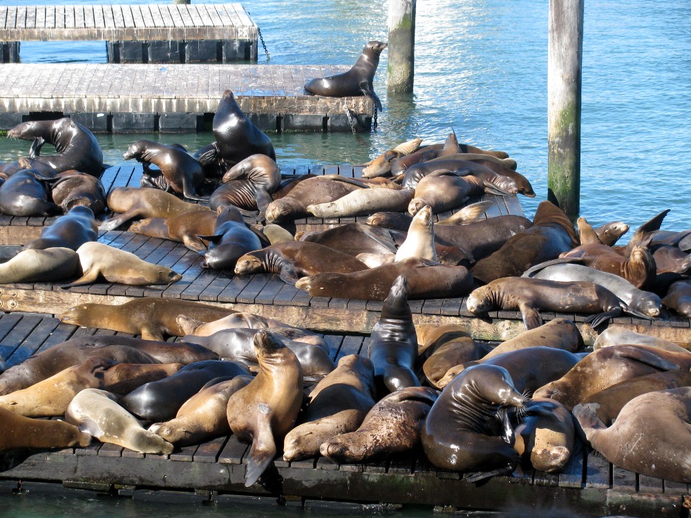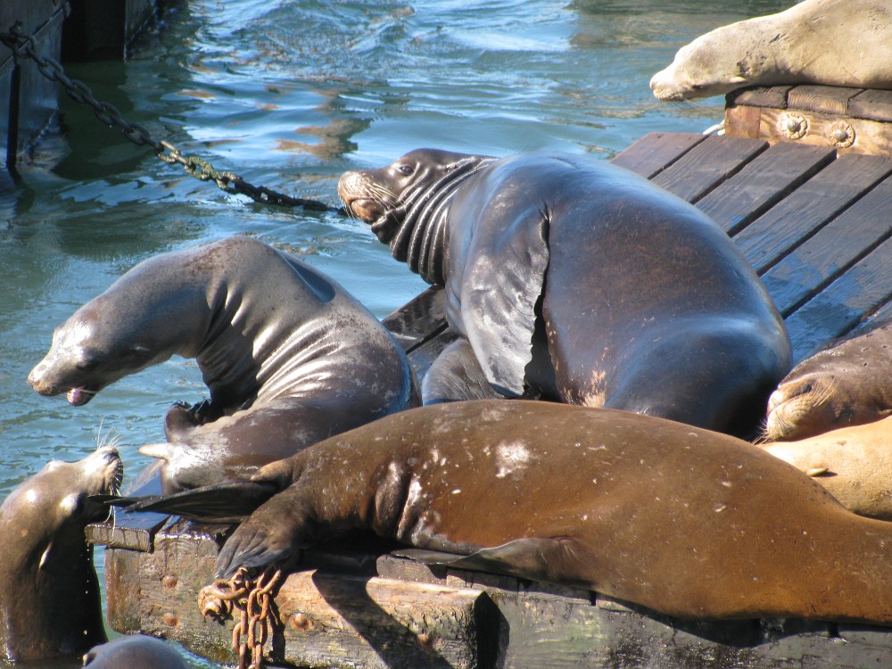 The famous 'sea-lebrities' (not our term :) of Pier 39. So fun to watch and listen to - less good to smell them.